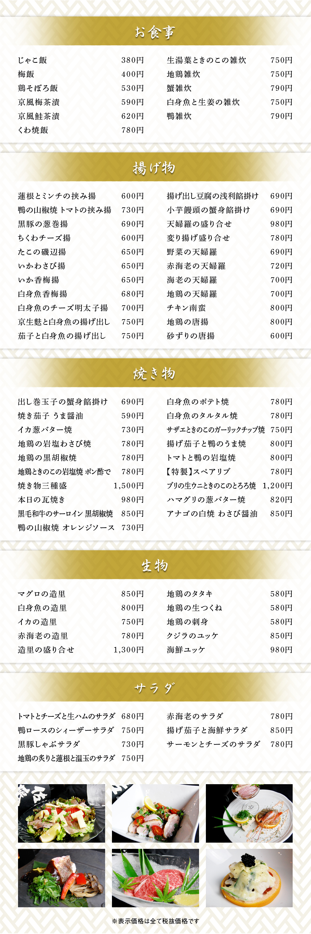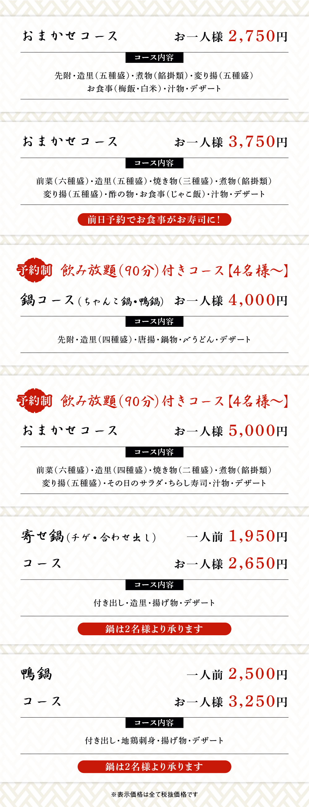 一品料理から季節のコースまで、幅広いバリエーションがお楽しみ頂けます。